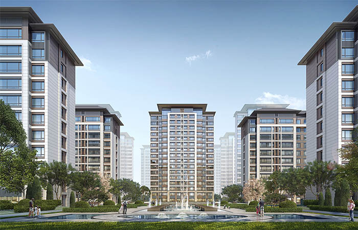 景觀:根據(jù)組團分區(qū),東西向主軸景觀與南北布置的三層景觀院落形成兩個十字景觀軸,并與城市生態(tài)長廊相連。運動、兒童、閱讀等不同的景觀空間相互交融。院內(nèi)設(shè)置環(huán)形健康步道,串聯(lián)多種公共活動空間和健身場地,滿足居民活動需求。