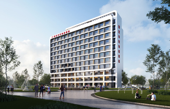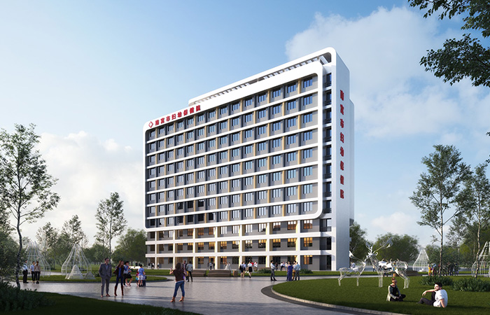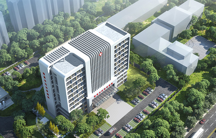 規(guī)劃設(shè)計(jì)在現(xiàn)狀建筑西側(cè)植入新建建筑體量,新建建筑與原有建筑形成中軸對(duì)稱的總體布局。在病房樓四周,設(shè)置大面積綠地景觀,營(yíng)造出綠色共享的景觀區(qū)域,與自然為鄰,享受舒適環(huán)境。