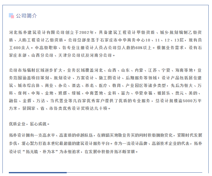 ? 建筑設計師(工作地點:石家莊/太原/天津/鄭州)