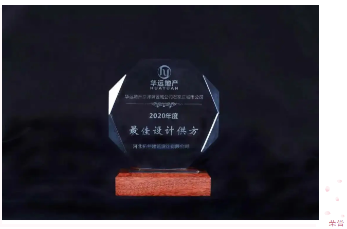 我司榮獲華遠(yuǎn)地產(chǎn)京津冀區(qū)域石家莊城市公司“2020年最佳設(shè)計供方”獎項。