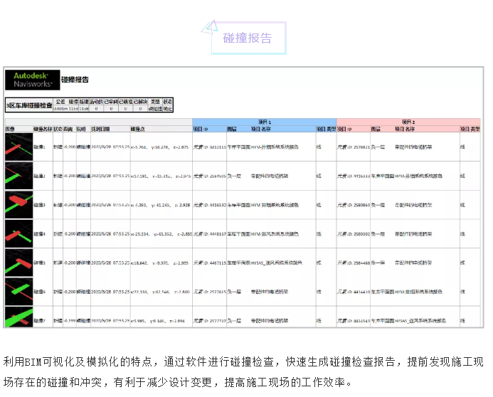 利用BIM可視化及模擬化的特點,通過軟件進行碰撞檢查,快速生成碰撞檢查報告,根據(jù)報告調(diào)整管線,