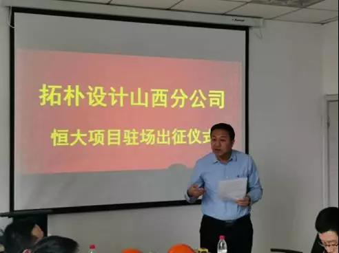 2019年3月26日,拓樸設(shè)計(jì)山西分公司恒大項(xiàng)目駐場出征儀式如期舉行,總公司執(zhí)行總經(jīng)理李玉軍、恒大總工室領(lǐng)導(dǎo)等人一同參加了此次出征儀式,為山西分公司戰(zhàn)友出征加油助威。