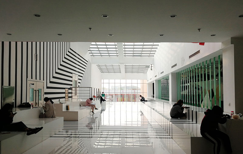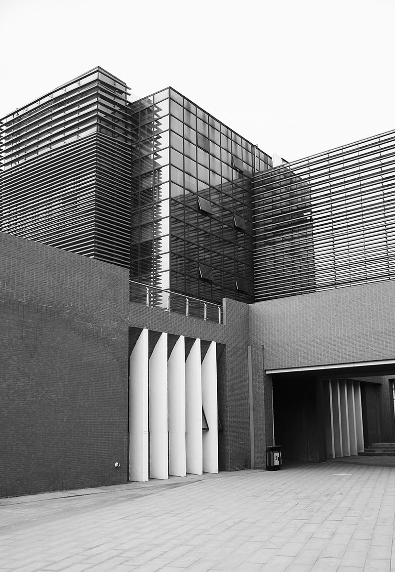 從整體規(guī)劃布局上看,校園內(nèi)各樓排布張弛有度,建筑與景觀相互結(jié)合,中央大湖與景觀廊架搭配蜿蜒蜷曲的步道,平靜中孕育詩(shī)意,給一所沉穩(wěn)的文化建筑帶來(lái)靈動(dòng)的韻律之美。
