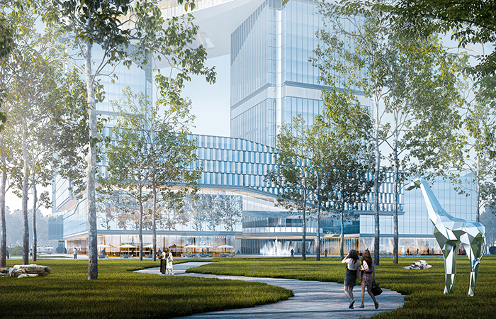 ? ? 本項(xiàng)目為高鐵77號(hào)地商業(yè)與服務(wù)業(yè)設(shè)施地塊,項(xiàng)目以打造開放的城市門戶、建設(shè)高端的商業(yè)辦公地標(biāo)建筑、營(yíng)造舒適的公園辦公環(huán)境為設(shè)計(jì)策略,為城市增加生機(jī)活力。
