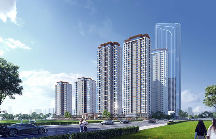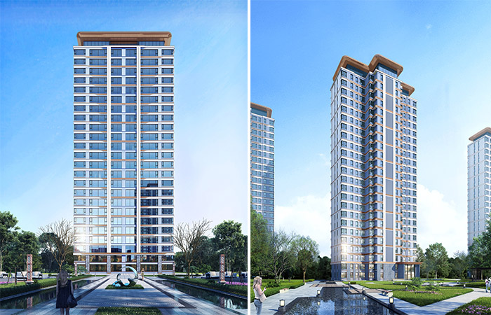 依托石家莊源遠(yuǎn)流長的文化底蘊,弘揚傳統(tǒng)文化的同時塑造城市新名片。建筑立面靈感來源于傳統(tǒng)器物美學(xué),引入“行云如意”的設(shè)計理念,打造具有文化內(nèi)涵的城市核心地標(biāo)。塔樓造型的對稱手法,視覺上強化了內(nèi)聚和向心力的群組感,在城市空間中脫穎而出,成為槐安路的地標(biāo)性建筑。住宅立面延續(xù)公建塔樓的設(shè)計語言,賦予建筑流暢柔美的姿態(tài)。