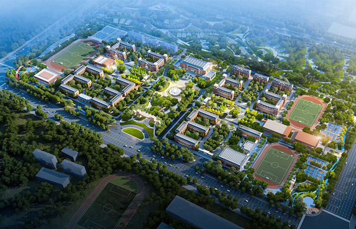 本項目對標國內(nèi)外多所一貫制學(xué)校項目,深度考察,結(jié)合隆堯地處華北大地風(fēng)貌條件,濃縮出以新古典主義為學(xué)校基調(diào),融合現(xiàn)代元素,打造“容貌端莊,理性簡潔”的建筑形式,塑造高品質(zhì)的現(xiàn)代建筑組群形象。