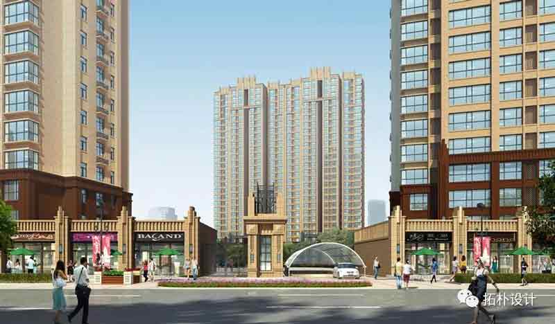 項(xiàng)目建筑采用ART-DEC0建筑風(fēng)格,盡顯華貴堅(jiān)實(shí)、 細(xì)部裝飾細(xì)膩豐富。通過(guò)采用剛?cè)岵?jì)的豎向線條,建筑高聳向上的外立面,體現(xiàn)出建筑奢華、精致、大氣的氣度,能夠表達(dá)出居者不斷向上,積極進(jìn)取的精神。