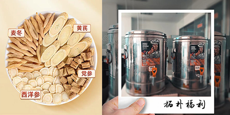 ? 四寶湯茶由黨參、黃芪、麥冬、西洋參精心配制而成,這些中藥材不僅具有很好的清熱解暑效果,還能夠增強(qiáng)身體免疫力,提升員工的身體健康水平。在驕陽似火的夏日,一碗清爽的綠豆湯,一杯養(yǎng)生的四寶湯茶,無疑為員工們送上了一份清涼,也為他們的身體健康筑起了一道堅固的防線。