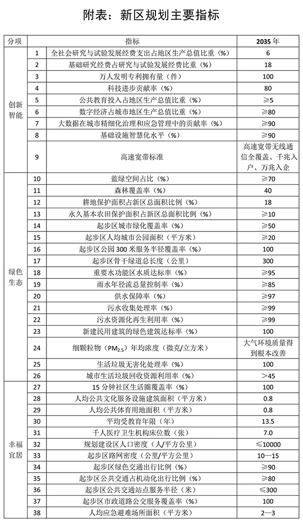 附表:新區(qū)規(guī)劃主要指標(biāo)
