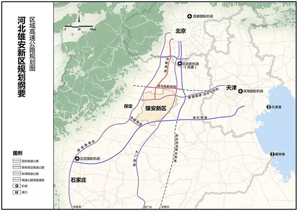 完善高速公路網(wǎng)。構(gòu)建“四縱三橫”區(qū)域高速公路網(wǎng)?!八目v”為京港澳高速、大廣高速、京雄高速(含新機(jī)場北線高速支線)、新機(jī)場至德州高速,“三橫”為榮烏高速新線、津雄高速、津石高速,實(shí)現(xiàn)新區(qū)60分鐘到北京、天津,90分鐘到石家莊。加強(qiáng)新區(qū)與天津港(9.140, -0.19, -2.04%)、黃驊港交通聯(lián)系,暢通新區(qū)出海通道。